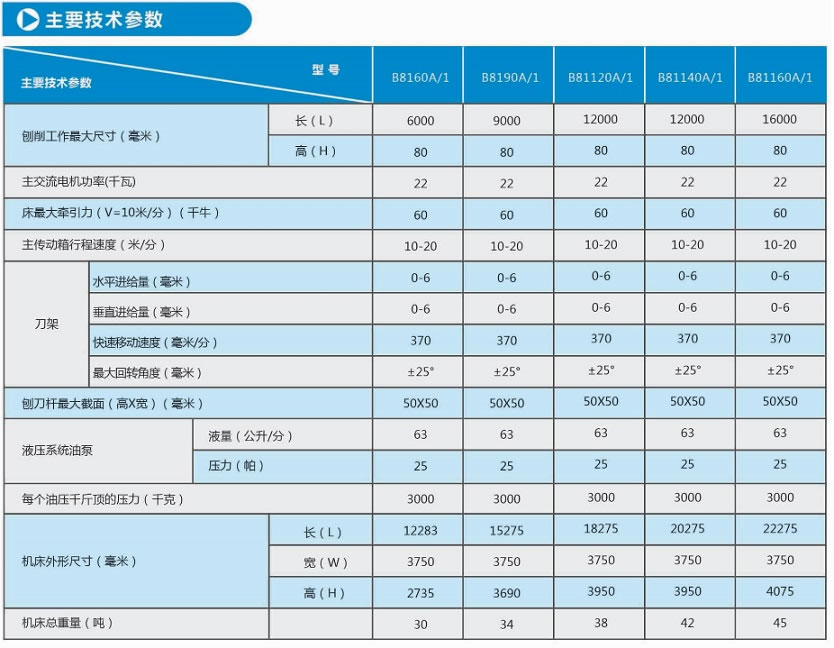 >> 機床的電氣化、自動化程序較高。如板料的自動夾緊、刨削過程中的自動進給和自動抬刀及切削行程的自動換向等;可以減輕操作者勞動強度和提高機床的生產效率。>> 機床各主要運動的控制按鈕、操作手柄都比較集中,操作方便。主傳動箱的導軌采用了鑲裝式結構,其特點是耐磨和易于檢修。床身導軌進行了特殊的表層淬火處理,從而提高了導軌的耐磨性。